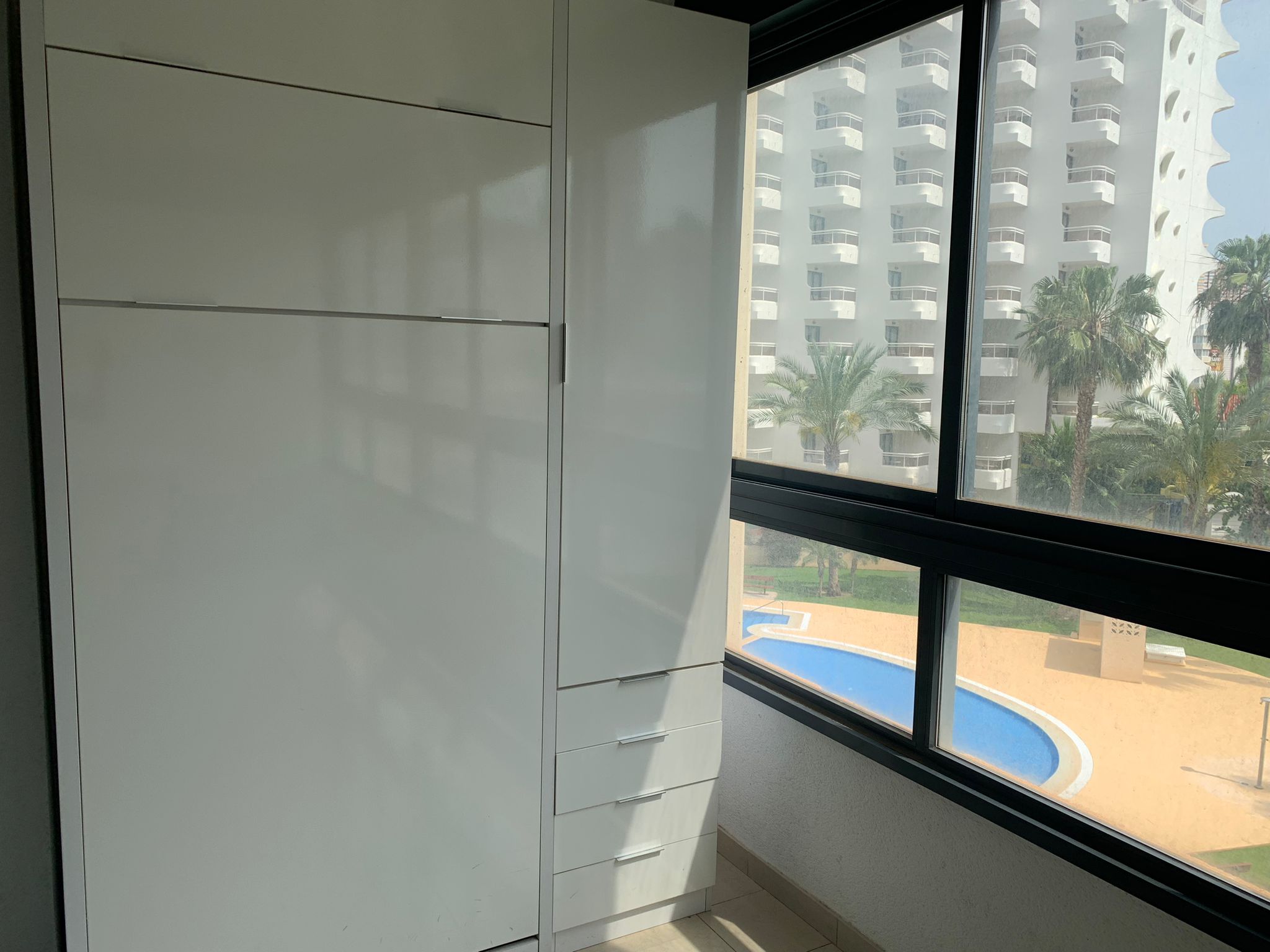 Op de 3e lijn (op 200 meter) van het welbekende Levante strand in Benidorm bevindt zich het prachtige complex Gemelos 26 met een fraai aangelegde tuin waarin u verschillende zwembaden, een tennisbaan, padelbanen, een ruime ligweide en een kinderspeeltuintje vindt. Het gebouw is opgeleverd in juli 2009. Wij kunnen u hierin dit mooi ingerichte 1- slaapkamer appartement op de 2e verdieping (toren 1) aanbieden, wat geschikt is voor 4 personen maximaal. Er is een zonnig, beglaasd terras met een prachtig uitzicht op de tuin en omgeving. De bovenste ramen kunnen helemaal worden opengeschoven. Het gebouw is modern aangelegd en wordt goed onderhouden door een conciërge, die dagelijks aanwezig is.